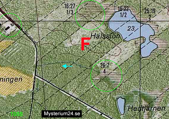 När Quick analyserade de olika specialkartorna över området kring fyndplatsen så lade han märke till att det är några meters höjdskillnad mellan områdena norr och söder om fyndplatsen. Markhöjden vid Halssjön är ca 20 meter och nedanför T-korsningen ca 15 meter över havet.