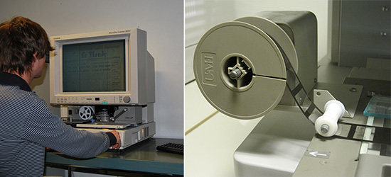 Det kan vara ett tidsödande arbete att veva mikrofilm, man måste gå igenom och läsa varje tidningssida manuellt för att hitta det man söker: