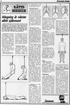 Sju veckor efter att OB:s hustru hittats död i en snara fäst i deras sänggavel, publicerades i tidningen Svensk Polis en artikel om hängningar som OB hade skrivit. Rubriken var ”Hängning är nästan alltid självmord”. OB hade inte stoppat publiceringen av artikeln. Han påstod att det inte varit möjligt, vilket inte var sant enligt tidningens chefredaktör.