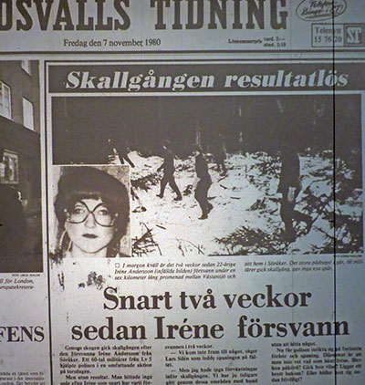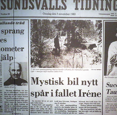Förstasidan, onsdag 5 november, ”Mystisk bil nytt spår i fallet Iréne”: