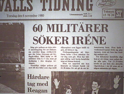 Förstasidan, fredag 7 november, ”Snart två veckor sedan Iréne försvann”: