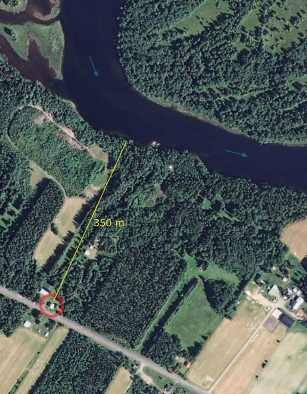 Bild ovan: En rymningshypotes som involverar olycka är att Viola ville ta sig tillbaka till stan men inte samma väg som hon kom. Utan istället via vägen på andra sidan älven. Och att hon trillat i vaken när hon försökt korsa älven över isen. Vad som talar emot den hypotesen är att det blir långt att vandra, genom skogen, och den sträckan var troligen inte lika välbekant för Viola.