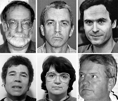Bild ovan: Harold Shipman, Charles Cullen, Ted Bundy, gifta paret Fred & Rosemary West, samt Steve Wright.