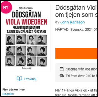 Här på bloggen finns flera inlägg om mysteriet Viola Widegren, så det fallet är extra intressant härifrån sett.